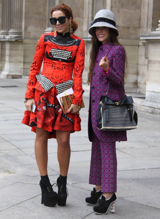 Her jewelry creations, like these skeleton earrings, are bold and very fashion forward. She also designs a ready-to-wear line called Abrakadabra. Of course, she caught my eye immediately because of her stunning Mary Katrantzou dress. Her friend wore head-to-toe Prada from the F/W 2012 collection. If you are interested in my look, click here for the previous post.