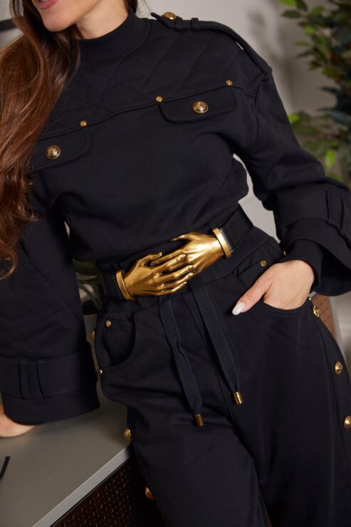 My look: Button-embellished quilted jersey sweatshirt, and matching button-embellished cotton-jersey track pants