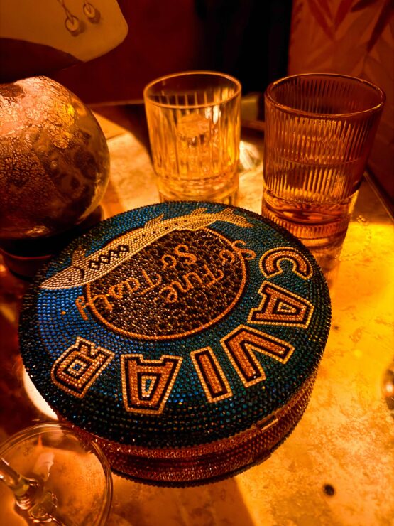 So in love with my friend’s beautiful caviar clutch by Judith Leiber Couture.