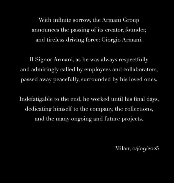 Armani’s legacy will live on in every soft shoulder line, every perfectly cut jacket, every timeless silhouette. And for me, his passing will always be tied to the memory of my mother, two lives that embodied elegance in their own ways, now side by side.