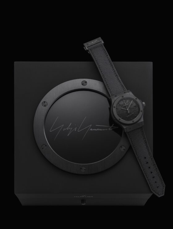This collaboration is more than fashion or watchmaking. It’s about vision. About how far you can strip something down to its essence. Both Hublot and Yohji Yamamoto have built their legacies on the same foundation: questioning the meaning of luxury. Both create through deconstruction. Hublot first broke Swiss tradition in 1980 with its Art of Fusion, blending gold with rubber, innovation with heritage. Since its debut at the Paris Fashion Week in 1981, Yohji Yamamoto redefined the conventions of fashion, using black as a response against excess and fashion’s norms.