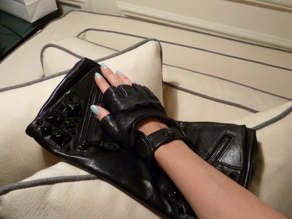 I wore my ultra-comfy (believe me, it is true!) strappy sandals by Gucci and a clutch bag by Alexander McQueen that has a glove attached to it (steal-proof).