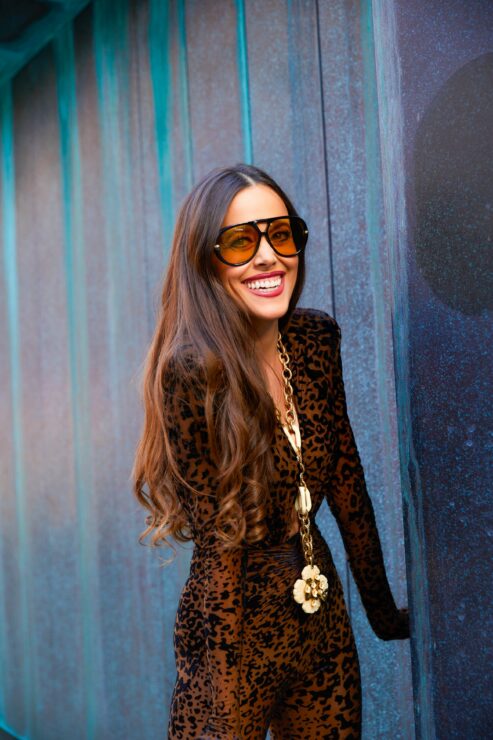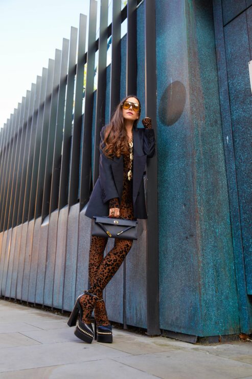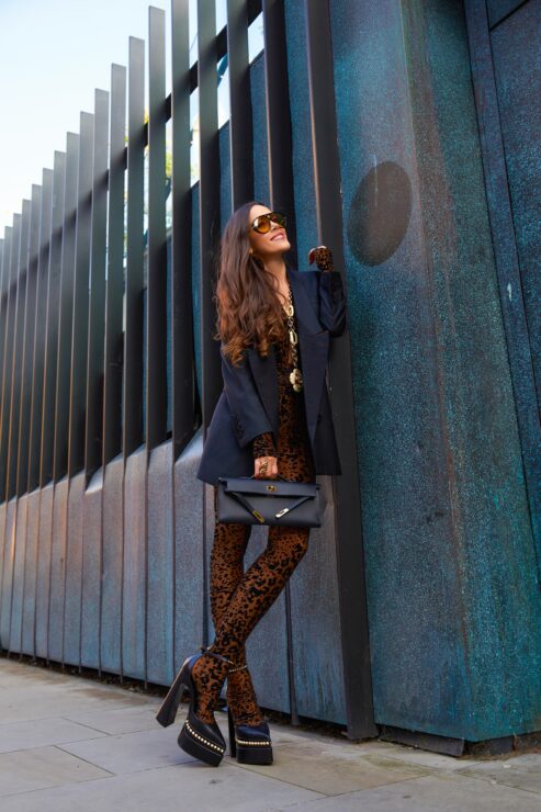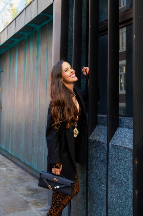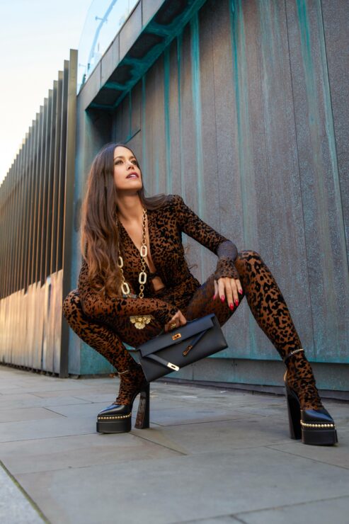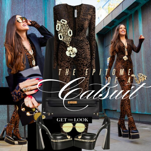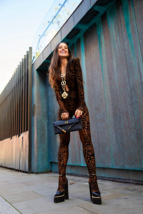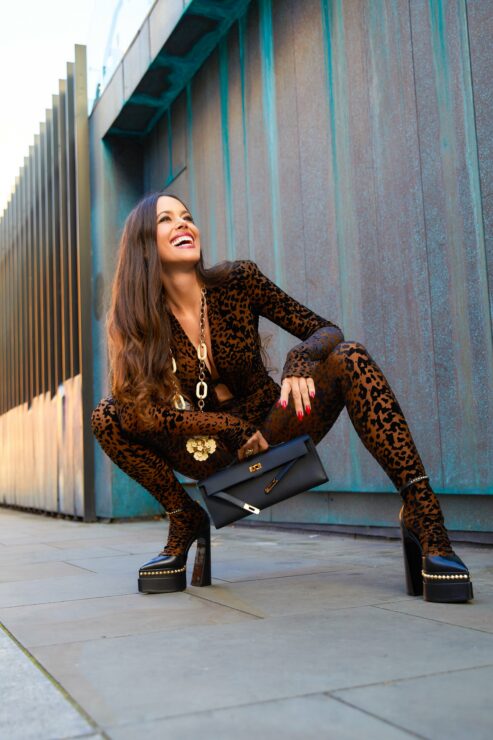 The epitome of a catsuit and quite literally so. An Alex Perry silhouette in animal print, bold yet razor-sharp in its elegance, worn for a night that called for exactly that energy.