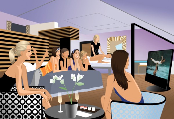 The new and extravagant package is sure to leave lasting memories, with loads of highlights and laughs. And here comes the good news: YOU HAVE THE CHANCE TO WIN THE SPA AND THE CITY PACKAGE FOR YOU AND FOUR OF YOUR GIRLFRIENDS. This original package (see Spa and the City Package below), which bears the artistic signature of no lesser than the master of graphic arts himself –namely British-born star illustrator Jason Brooks – is yours to enjoy.
