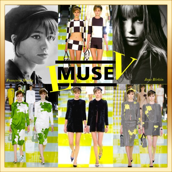 A fundamental duality underpinned the collection, Marc Jacobs used always two colors, shiny and matt textures. He had the image of two very different French icons of the ’60s, Françoise Hardy and Jane Birkin, in mind when creating the collection: Hardy always very covered up, Birkin always revealing plenty of flesh, but both always in long, simple clothes. To reinforce these oppositions, the collection was presented on models in pairs.