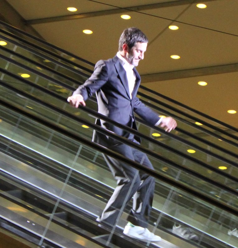 Marc Jacobs almost jumped down the escalator while the audience applauded.