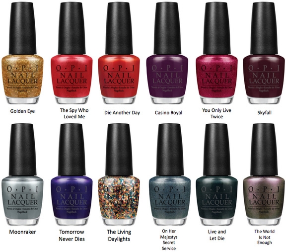 “From metallic and glitter finishes to jewel tones and even a jet black, these lacquers capture the film’s sophisticated and glamorous look.” said Suzi Weiss-Fischmann, OPI Executive VP & Artistic Director. The Skyfall nail polishes are even featured in the latest Bond movie by actress Bérénice Marlohe.