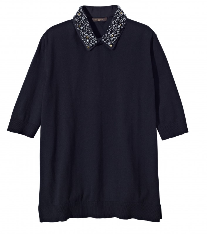 A simple sweater in a classic shade and softest cotton is sure to be one of the hardest-working items in any woman’s wardrobe. Louis Vuitton’s version comes with the added luxury of an embellished collar, hand-embroidered with Swarovski beads and LV studs. In a touch typical of the Icons collection, it can also be removed, taking a look from precious to pared-down in seconds.