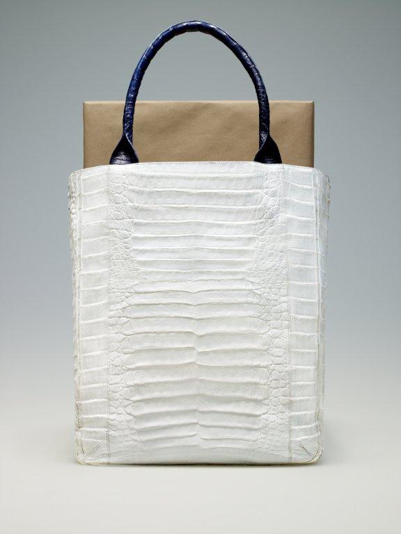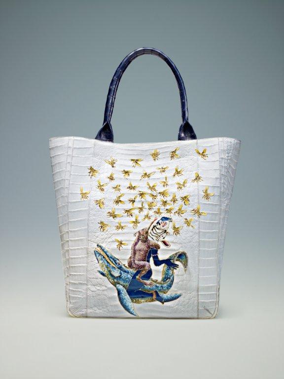 Finally, let me introduce you to an amazing art and charity project for which matte white crocodile leather was used as the “canvas” for each bag: THE ARTIST TOTES.