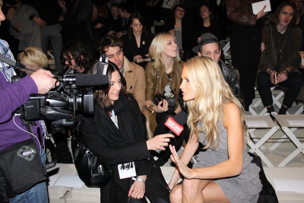 Today’s Burberry Prorsum F/W 2011 show took place in a massive tent in London’s Royal Park of Kensington Gardens. It was a true spectacle with many celebrities attending the event., including among others Rachel Bilson, Kate Bosworth, Alexa Chung, Stella Tennant, Maggie Cheung, Anna Wintour, Samantha Cameron, Mario Testino, Laura Haddock, Lily Donaldson, Julia Restoin Roitfield, Daisy Lowe, Alice Dellal, Sophie Kennedy-Clark, Poppy Delevingne, Nick Rhodes and Simon Le Bon.