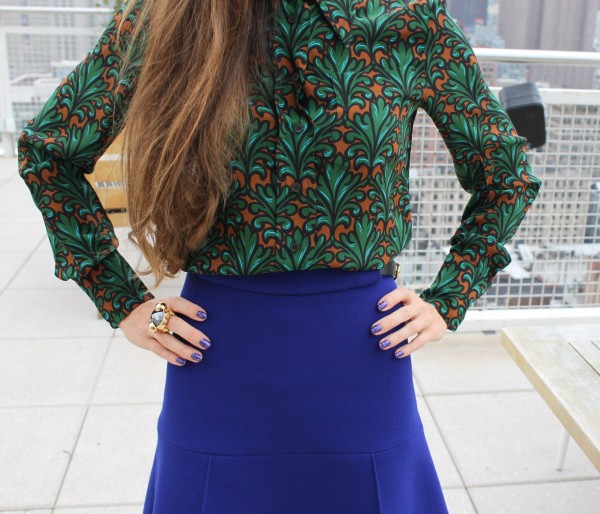My look: Printed silk crepe de chine shirt