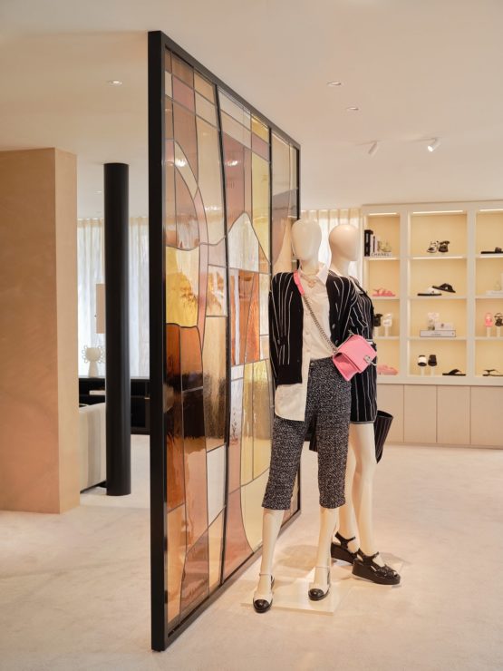 With the entrance hall dedicated to leather goods, accessories, scarves, costume jewellery and eyewear, the ground floor also houses an exclusive selection of timepieces, including the iconic J12, Première and BOY.FRIEND, and the COCO CRUSH, Camélia, Comète and N°5 jewellery collections. An exceptional conservatory welcomes the shoes. A unique chandelier, sunshades and original furniture combining pale toned fabrics and woven leather render the overall effect sublime.