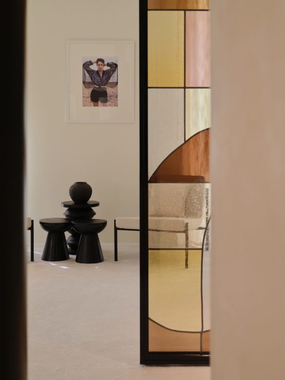 This new Tropezian sanctuary has been redesigned to echo La Pausa, the villa in Roquebrune-Cap-Martin that was entirely imagined and decorated by Gabrielle Chanel, and which holds a special place in the history of the House. The whitewashed walls, stone staircase and carousel of photographs projected onto a giant screen, resonate with this iconic place. The cut-out mirrors are reminiscent of the legendary folded-mirror staircase at 31 rue Cambon as the spirit of CHANEL subtly infuses every space.